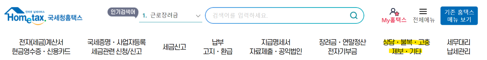 홈택스 로그인 -> 상담/불복/고충/제보/기타 -> 불복청구 -> 이의신청 -> 인적사항 및 이의신청서 서류 첨부 -> 신청하기