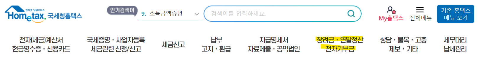 홈택스의 상단에 장려금, 연말정산, 전자기부금에 들어가서 심사 진행상황 조회 항목을 눌러 확인이 가능합니다.